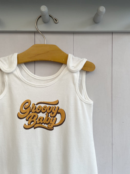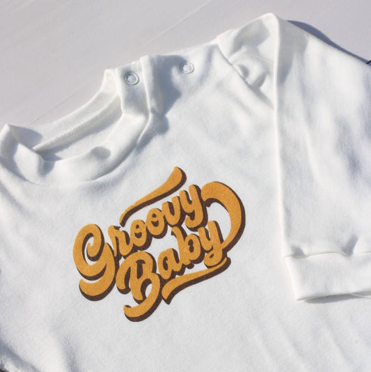 Retro Groovy Baby White 100% Cotton T-shirt with Poppers