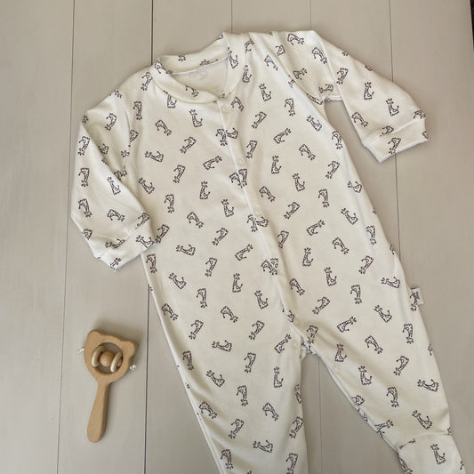 Giraffe Baby Long Sleeve Romper Dungaree in White