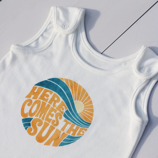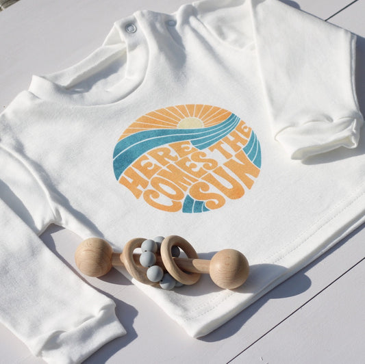 Retro Here Comes The Sun Baby Top With Long Sleeves in White