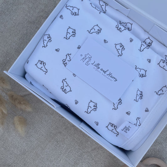 Elephant Baby Lounge Set in White with T-shirt and Bottoms