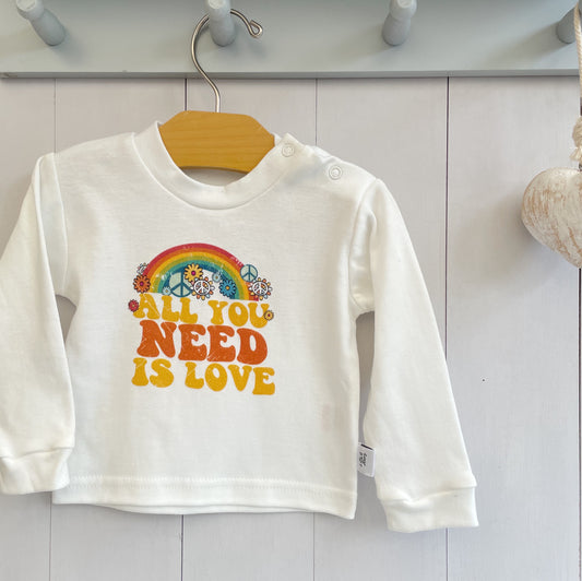 Retro All You Need Is Love Baby Top With Long Sleeves in White