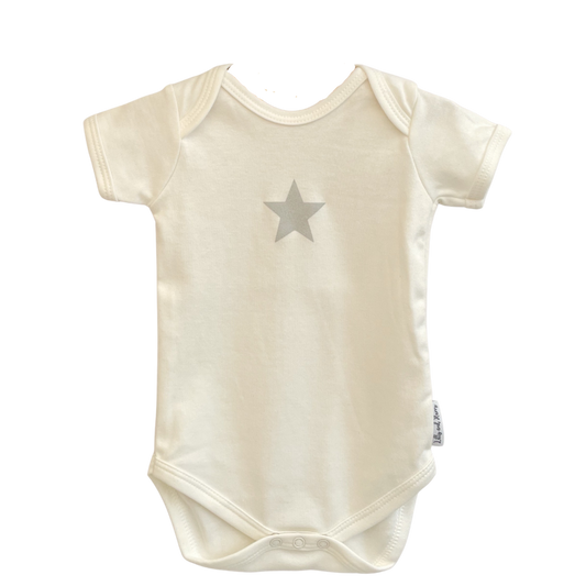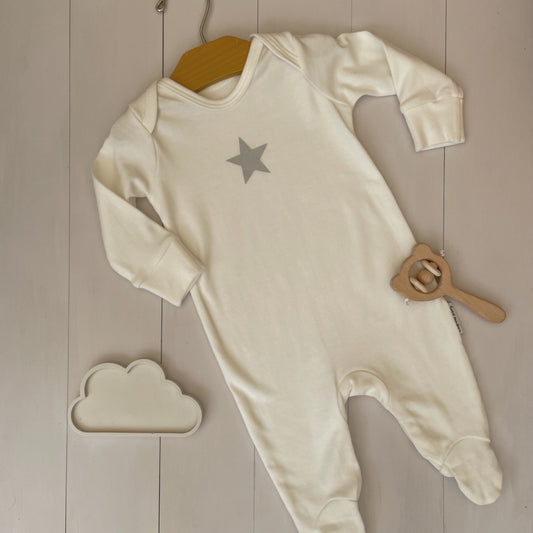 Long Sleeve Grey Star Baby Baby Grow in Milk White