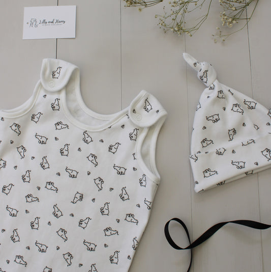 Elephant Baby Lounge Set in White with T-shirt and Bottoms